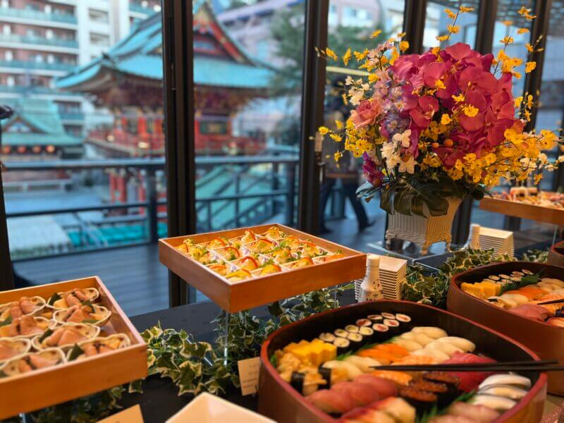 この神聖な空間で行うイベントやパーティーは、企業の展示会やパーティーなどが開催されていますが、非日常感と日本文化を感じられる特別な時間となります。当ホールでケータリングをご利用される主催者様は、「縁起を担ぐ」「和の雰囲気を楽しむ」といった会場の特徴を活かしたプランを希望される方が多く、ケータリングスイセンでは、神田明神ホールにふさわしい和テイストのケータリングや、日本文化を感じる演出を取り入れたお食事をご提案しています。