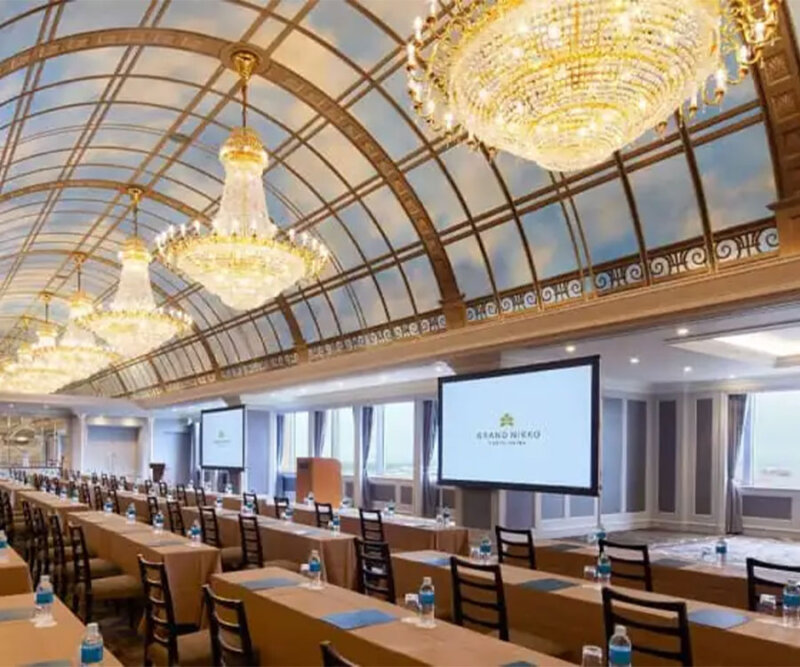 グランドニッコー東京 台場は、東京湾とレインボーブリッジを望む絶景ロケーションが魅力のラグジュアリーホテルで、ケータリング会場としても高い人気を誇ります。天井が高く開放感あふれるボールルームから、眺望の良い中小宴会場まで多彩な空間を用意。洗練されたインテリアと最新の設備が整い、格式あるパーティーや企業イベント、レセプションに最適です。ホテルならではの上質な料理とサービスで、華やかで記憶に残るひとときを演出できる会場です。