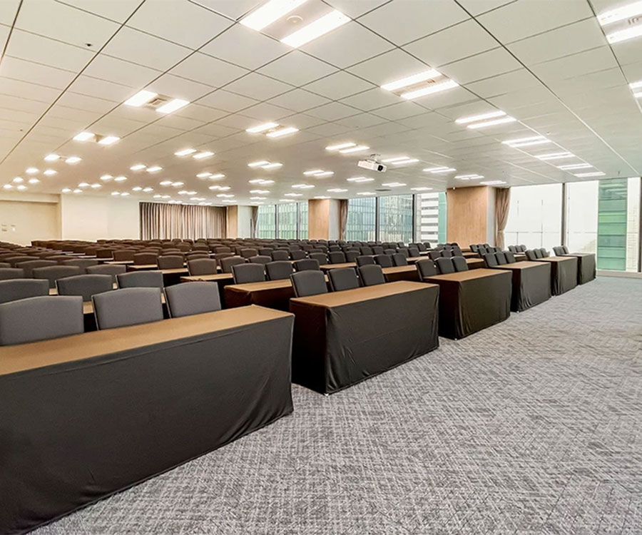 多用途対応型の空間で、演出や会議様式にも柔軟に対応。