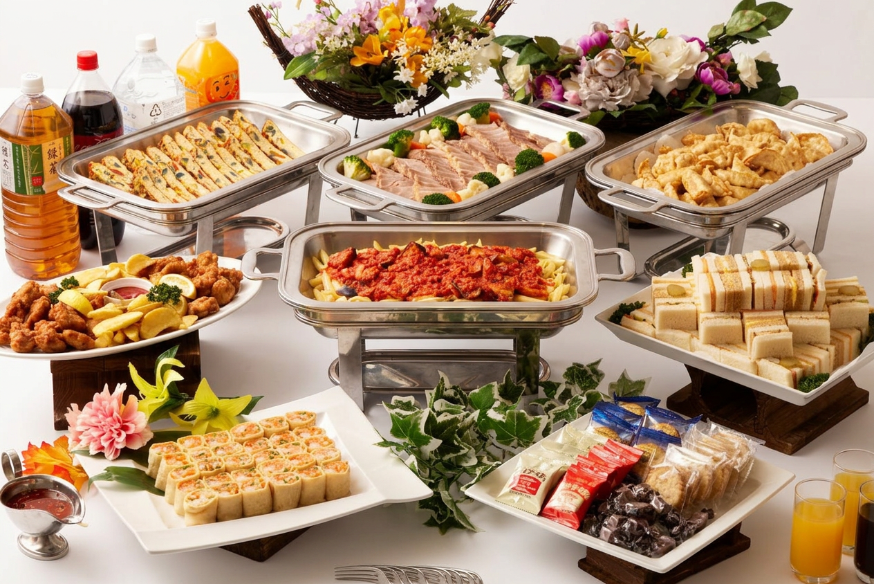 ・こちらのケータリングプランは、ご提供に伴い~30名様につき1名前後の配膳スタッフがプラン料金に含まれます。
